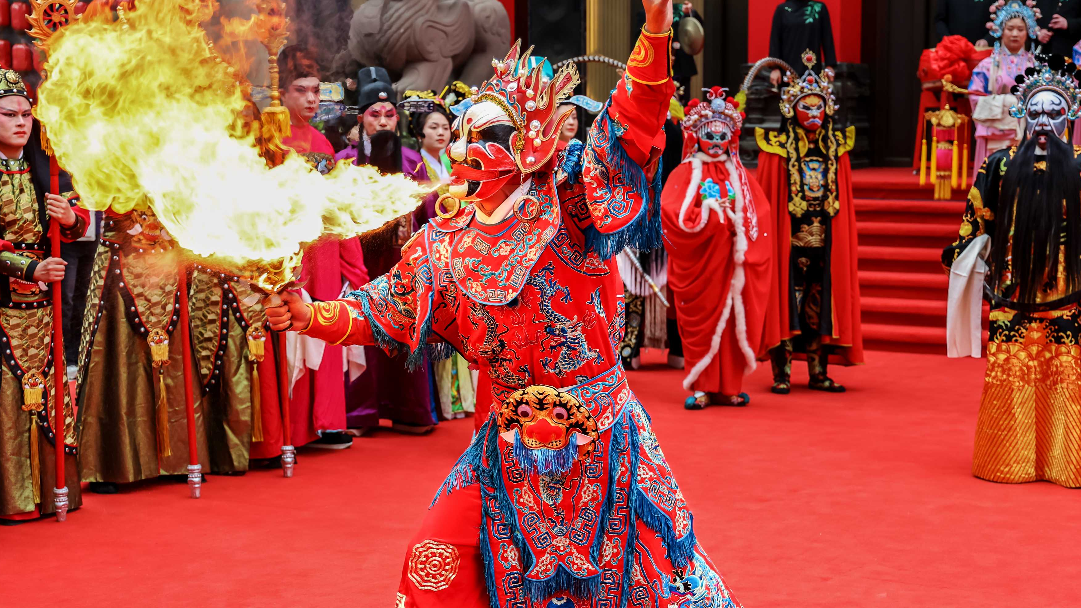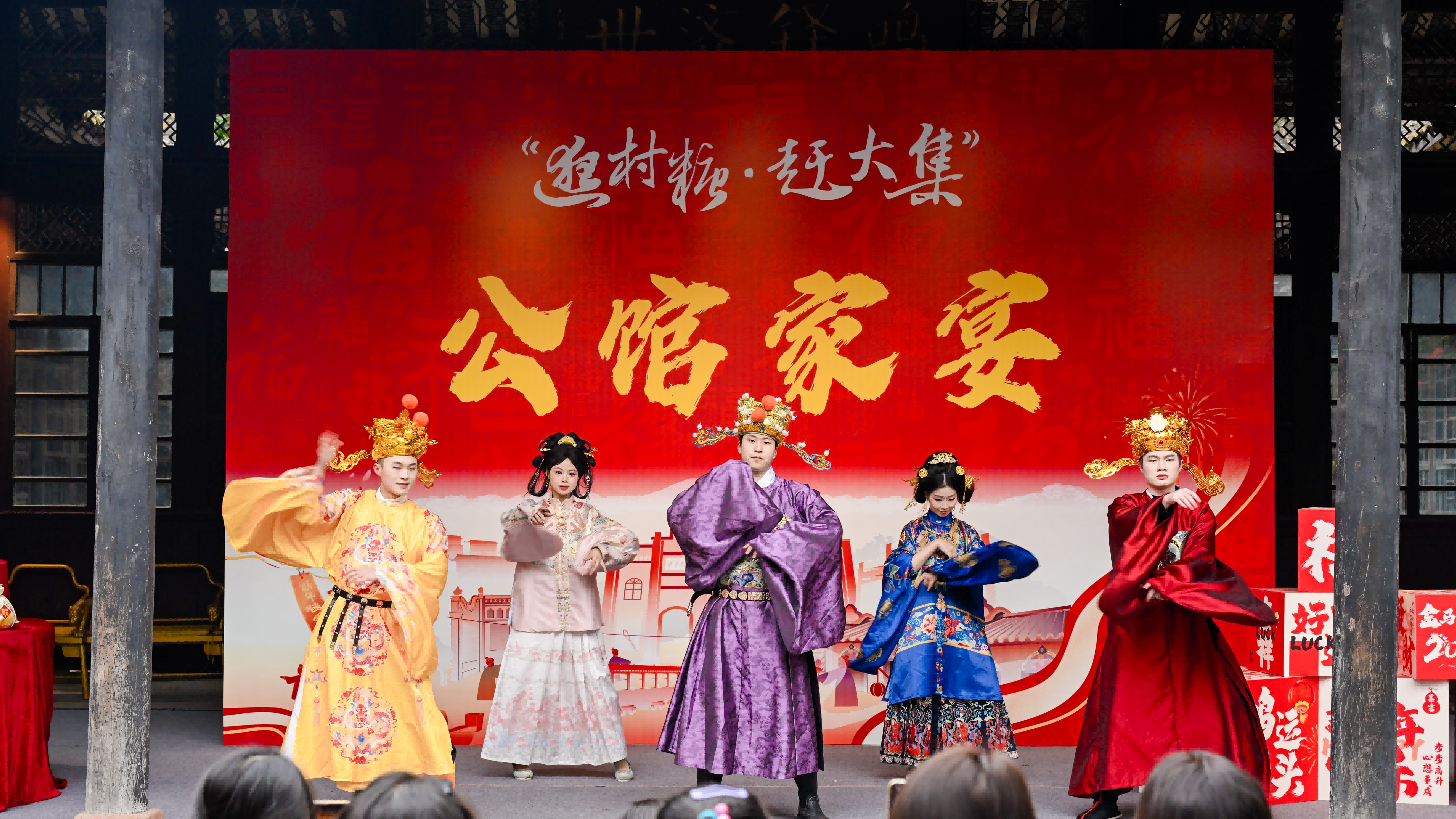 2月17日,大年初一,崇州街子古镇人流如潮,年味十足。舞龙舞狮、古戏台川剧演出、传统长街宴等活动营造出热闹喜庆的节庆氛围。
