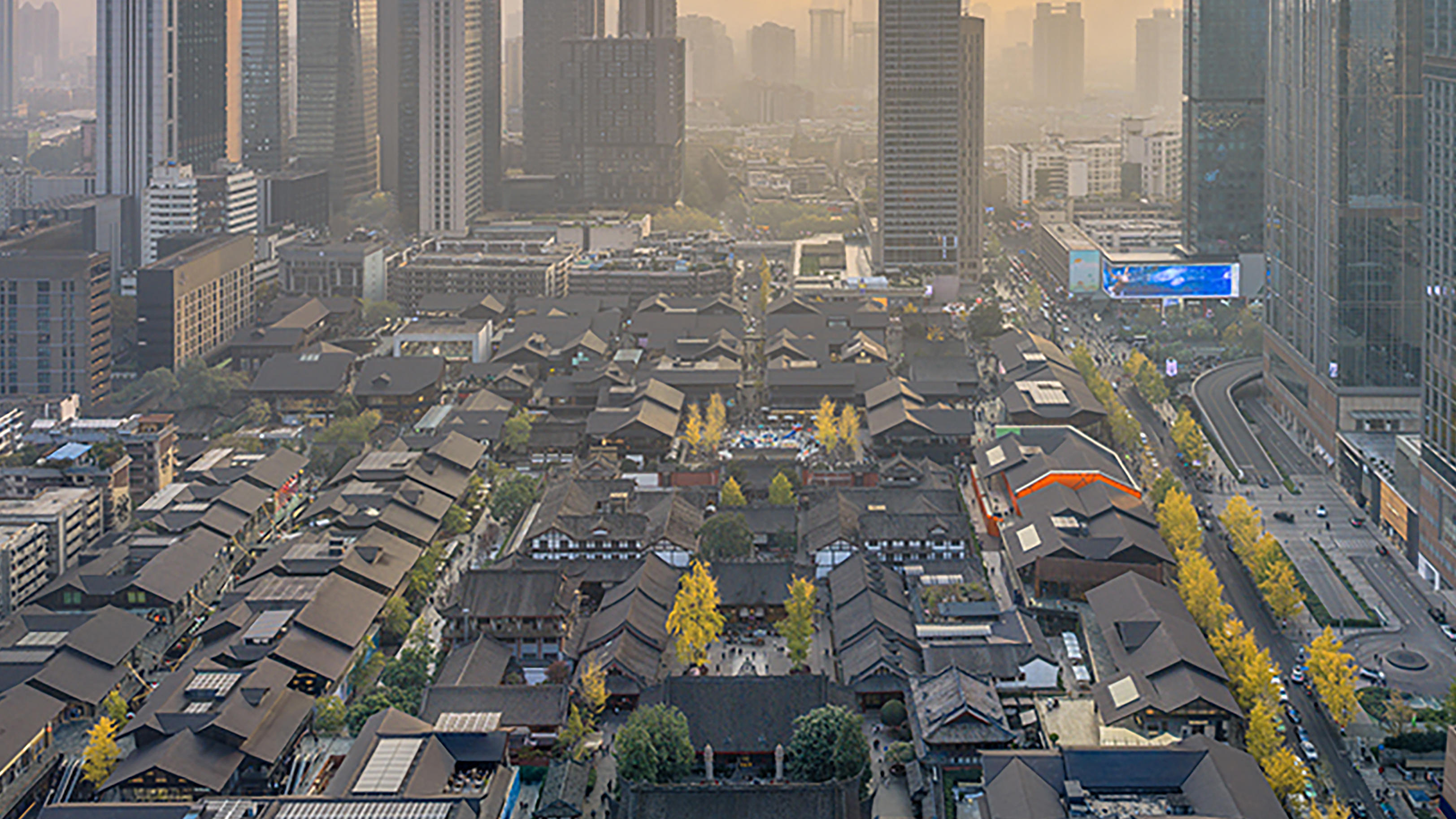 C视觉丨银杏鎏金 檐角挂冬:大慈寺冬景绘就成都封面