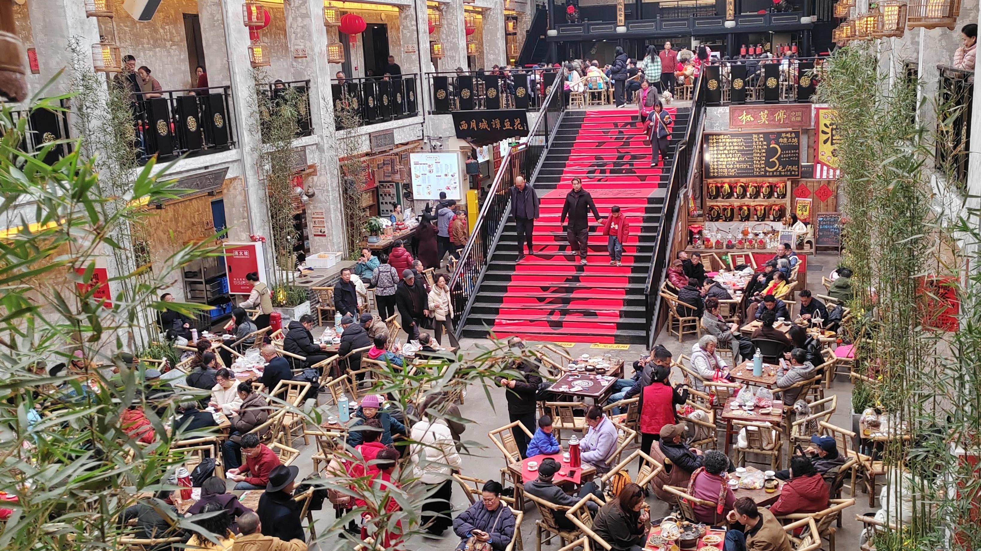 2月18日,正月初二,位于成都市青羊区的大旗茶馆,人声鼎沸、座无虚席。这家由成都漆器工艺厂闲置老厂房改造而成的新式茶馆,成为今年春节市民休闲、游客打卡的热门去处。