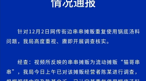 成都锦江区市监局通报“街边串串摊贩重复使用锅底汤料问题”:情况属实,依法作出严肃处罚