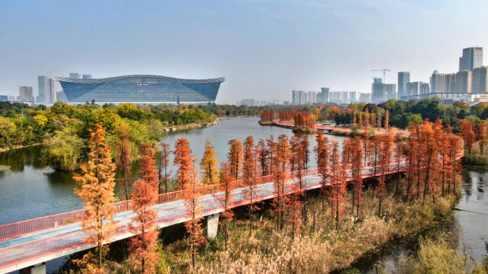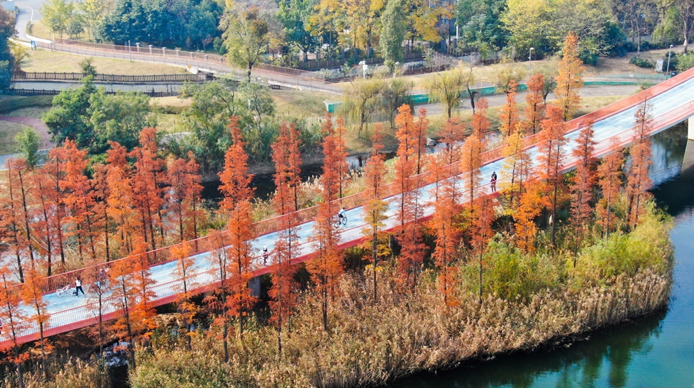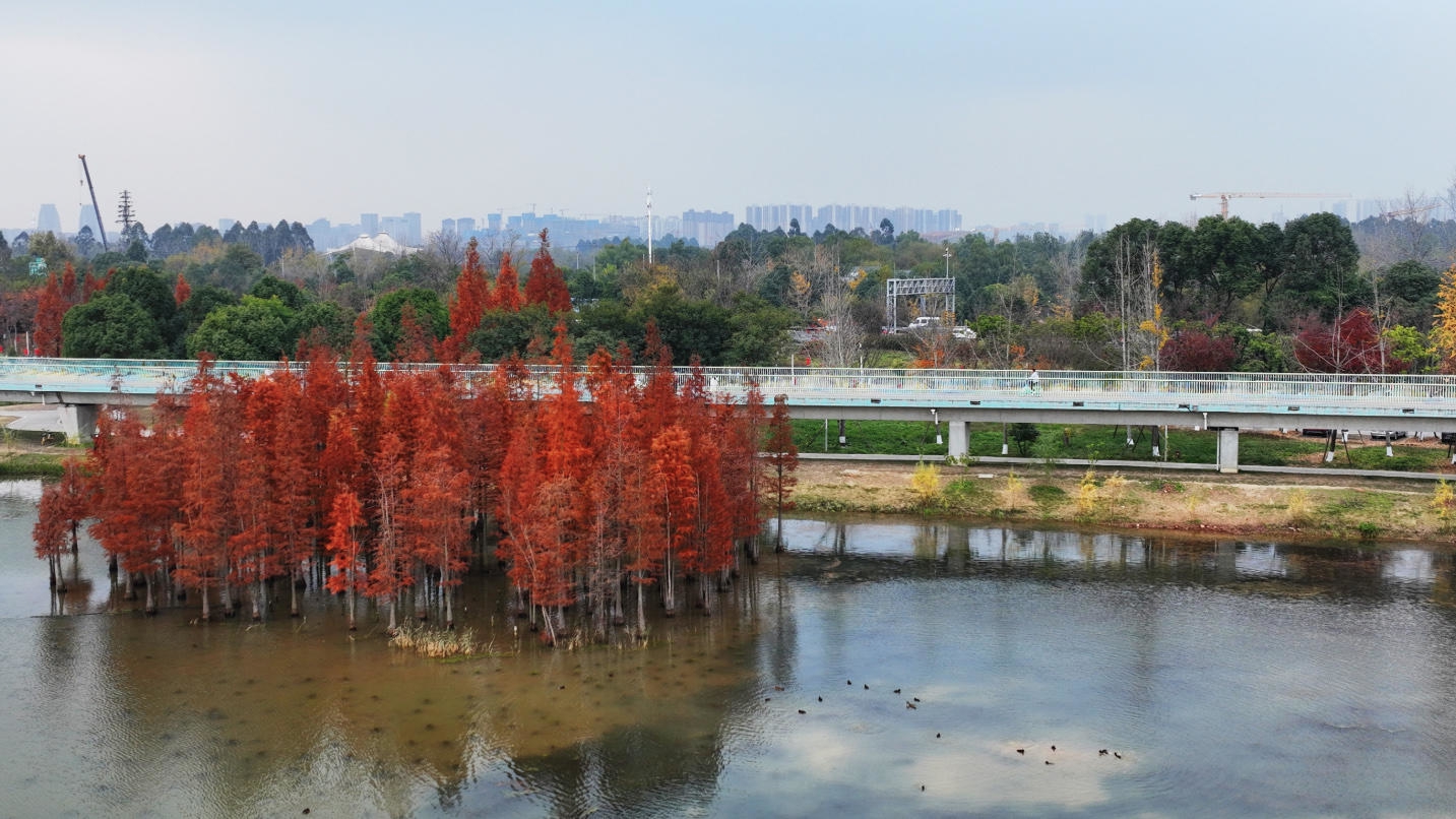 外交部发言人向全球“种草”成都初冬限定美景 锦城湖水杉林惊艳全世界