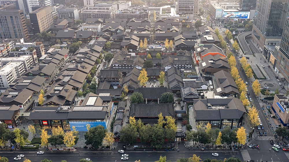 每年11月底至12月中旬,成都大慈寺迎来一年中最富韵味的时节。11月30日,寺内两株古银杏换上‘金衣’,与太古里商圈相映成趣,吸引众多游客驻足留影或在寺内茶社品味市井烟火。动与静、古与今的结合,诠释了成都的‘休闲之都’气质。