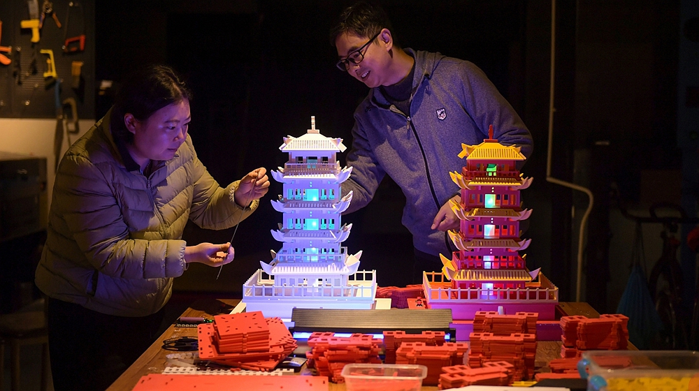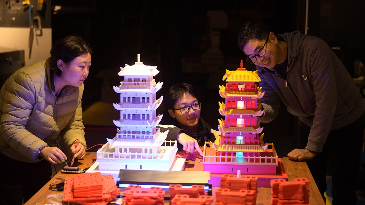 C视频丨四川成都:16小时“智造”一座“黄鹤楼” 成电创客科创成果频“出圈”