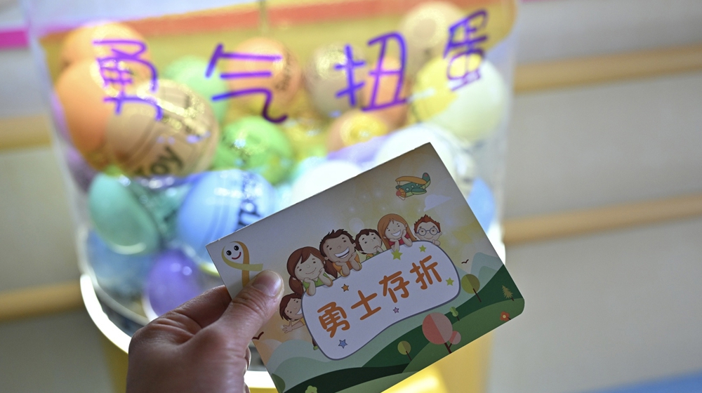 12月3日,成都市妇女儿童中心医院儿童血液肿瘤科病区新设置了一台多巴胺配色扭蛋机,吸引小患者们。每完成一次治疗,孩子们就能在‘勇气存折’上获得印章,集满五个印章就能抽取扭蛋。医护人员希望通过这种方式,给予孩子们更多的鼓励和支持,帮助他们坚持治疗。