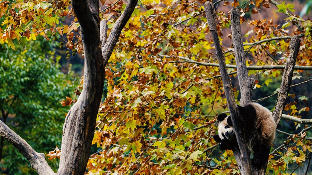 C视频丨暖阳彩林嬉熊猫 绘就四川最美冬景