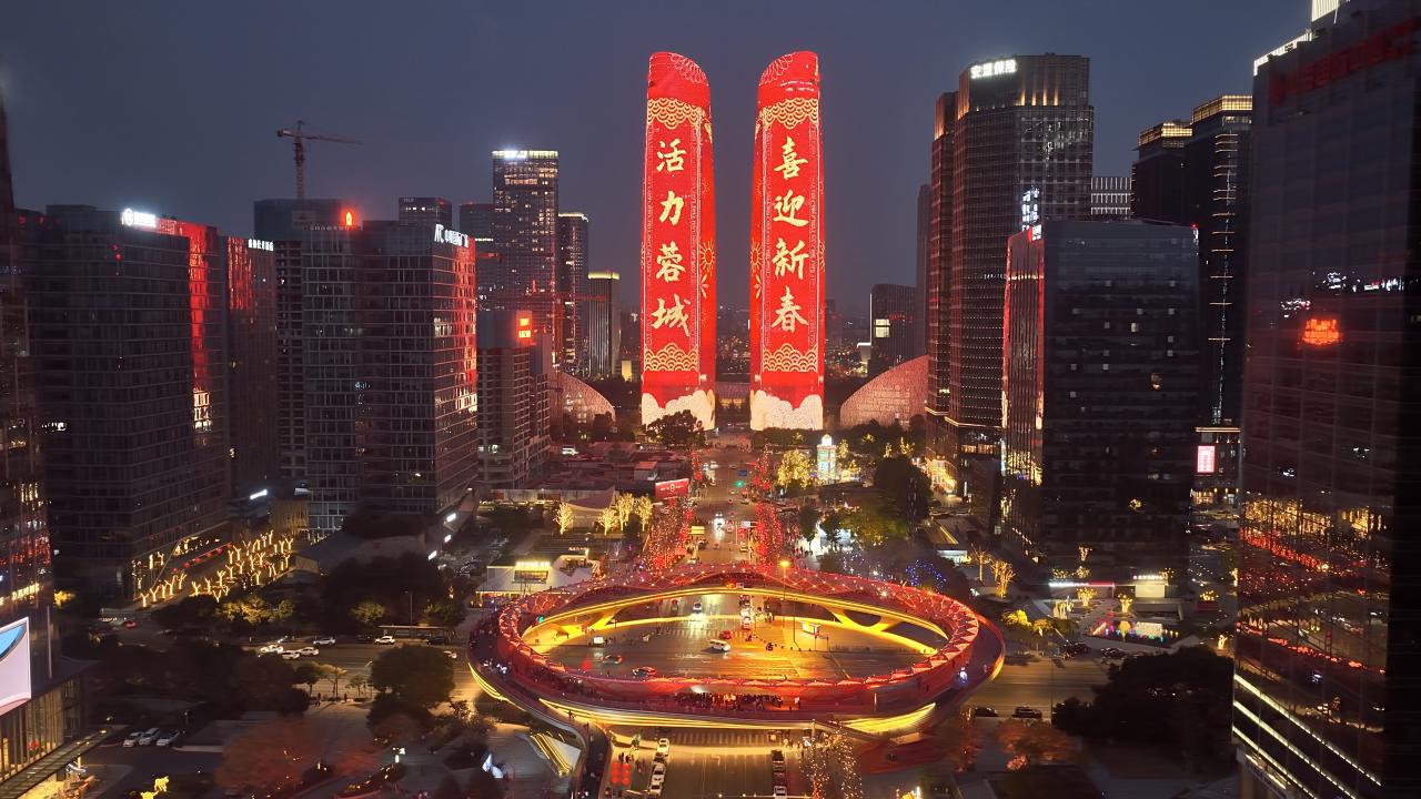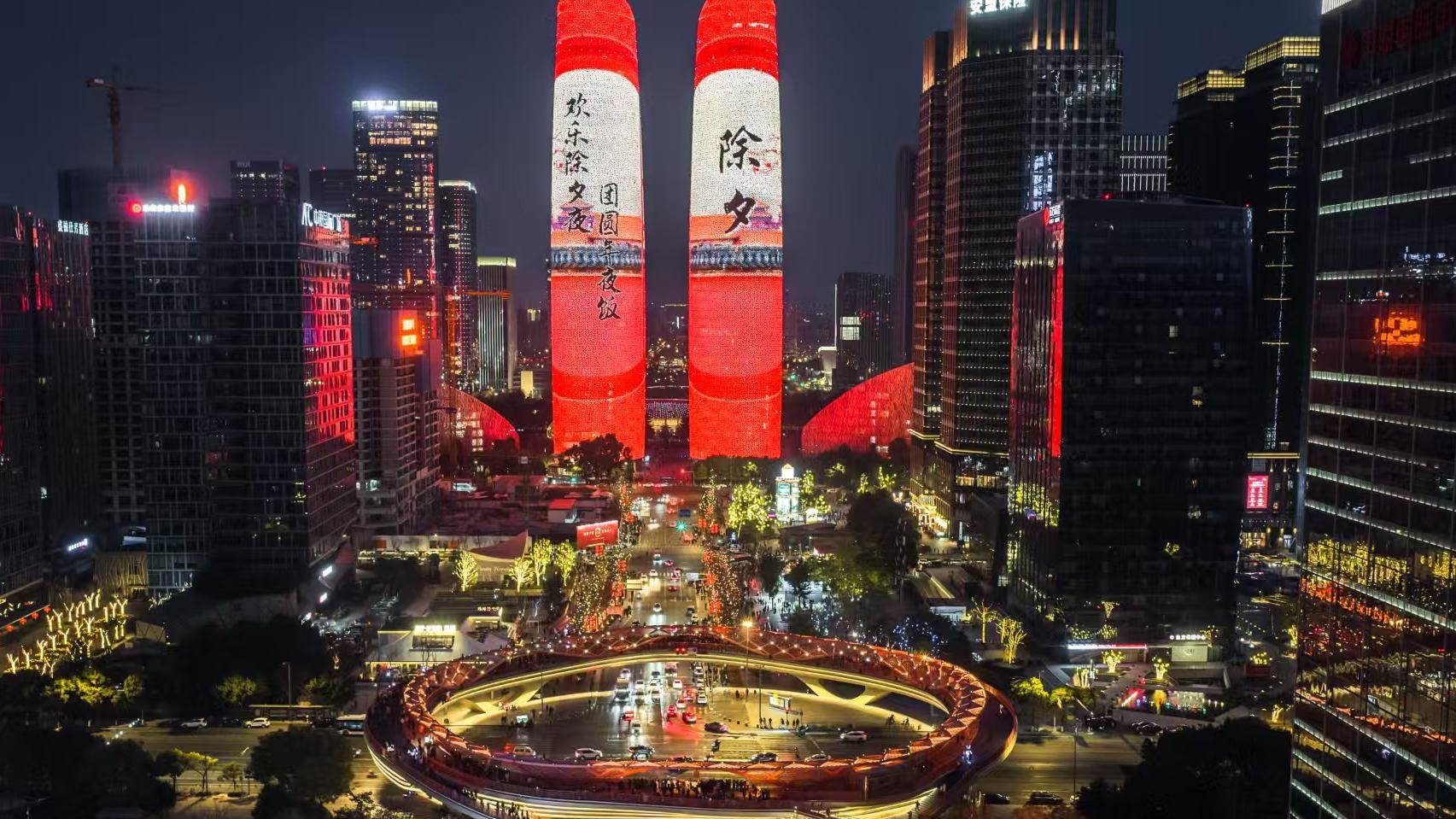 C视觉丨巨型春联、十二生肖璀璨光影耀成都双塔 向市民和游客花式拜年