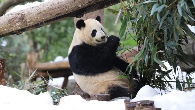 让国宝在冰雪乐趣中感受新春暖意。