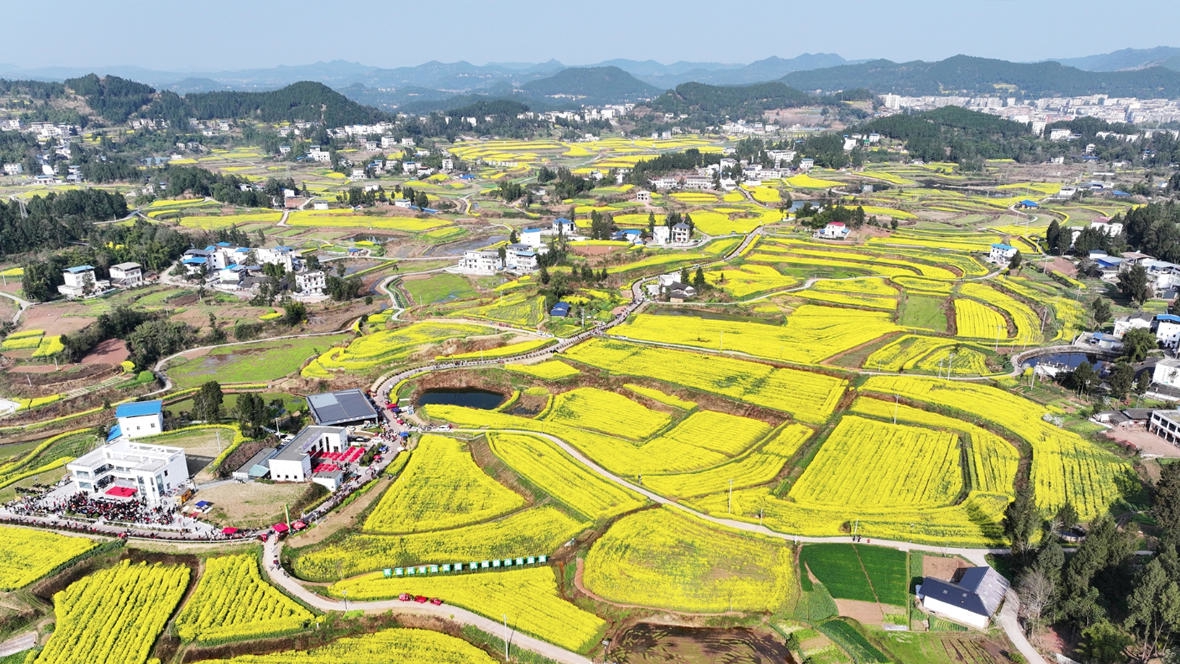 C视频丨四川仪陇:“金浪”涌动春意浓 万亩“油菜花海”花开迎客来