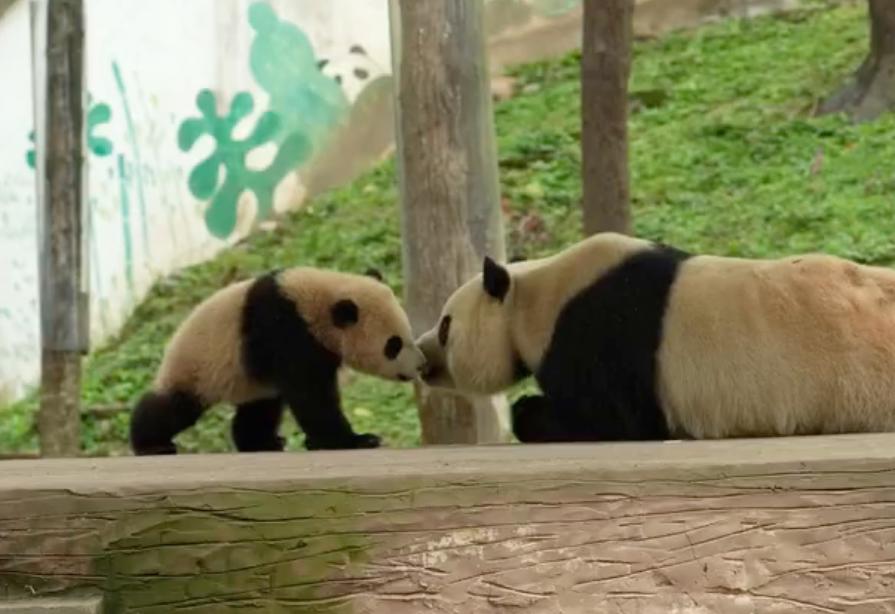 视频中,两只红褐色的小熊猫奶凶奶凶的,或追逐打闹踢对方肚子,或来回扑倒对方,有时还气喘吁吁。